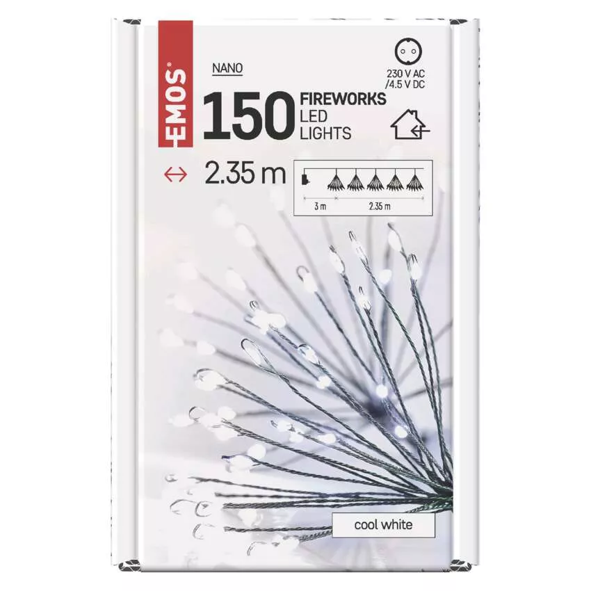 typ zasilania: zasilacz sieciowy, kształt: nano, ilość LED: 150, wielkość diod LED: 3 mm (nano), długość przewodu: 3 m, do wysokości choinki: nie dotyczy, kolor przewodów: zielony, moc: 2,7 W, napięcie wejściowe: 230 V AC, napięcie wyjściowe: 4,5 V DC, możliwość podłączenia: nie, stopień ochrony: IP20, żywotność: 10 000 godzin, materiał: metalowy, okres gwarancyjny: 2 lata, opakowanie: 1 szt., pudełko