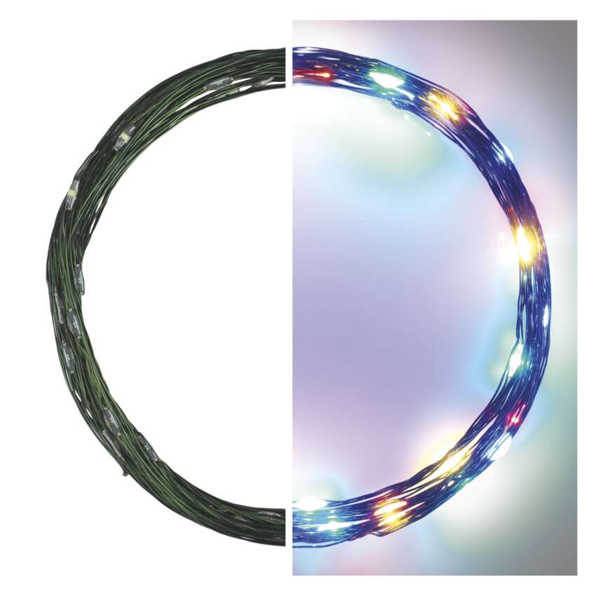 typ zasilania: zasilacz sieciowy, kształt: nano, ilość LED: 40, odstęp między diodami LED: 10 cm, wielkość diod LED: 3 mm (nano), długość przewodu: 5 m, do wysokości choinki: 100 cm, kolor przewodów: zielony, moc: 2,1 W, napięcie wejściowe: 230 V AC, napięcie wyjściowe: 3,5 V DC, możliwość podłączenia: nie, stopień ochrony: IP44, żywotność: 10 000 godzin, materiał: metalowy, okres gwarancyjny: 2 lata, opakowanie: 1 szt., pudełko