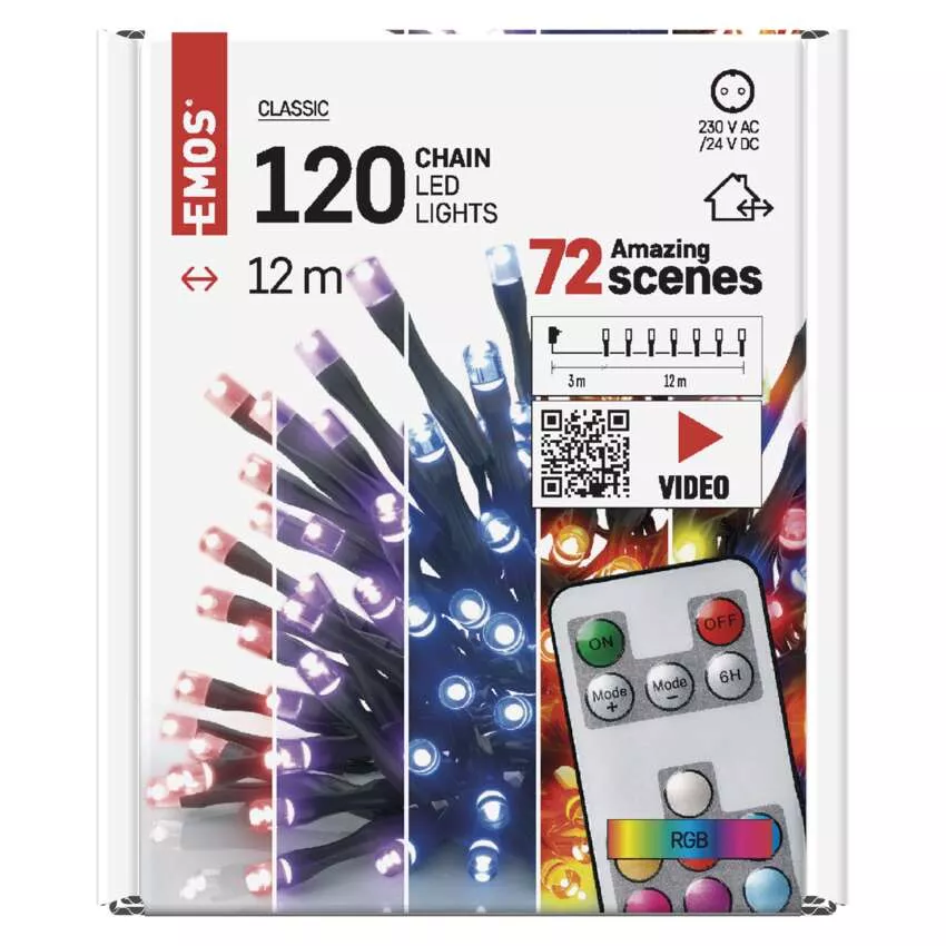 Lampki choinkowe Classic 120 LED 12m, RGB, 72 programy, pilot, IP44, timer
