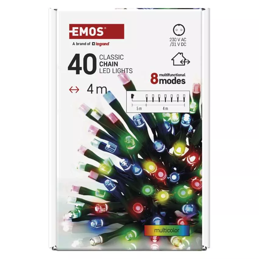 Lampki choinkowe Classic 40 LED 4m multikolor, zielony przewód, IP44, 8 programów, timer