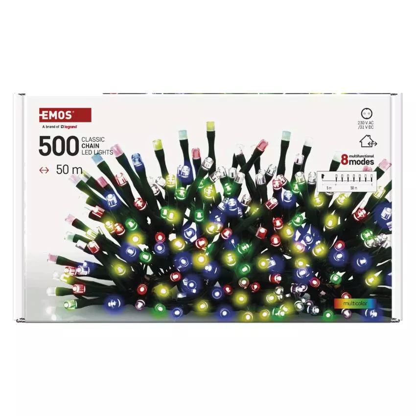 Lampki choinkowe Classic 500 LED 50m multikolor, ziel. przewód, IP44, 8 programów, timer