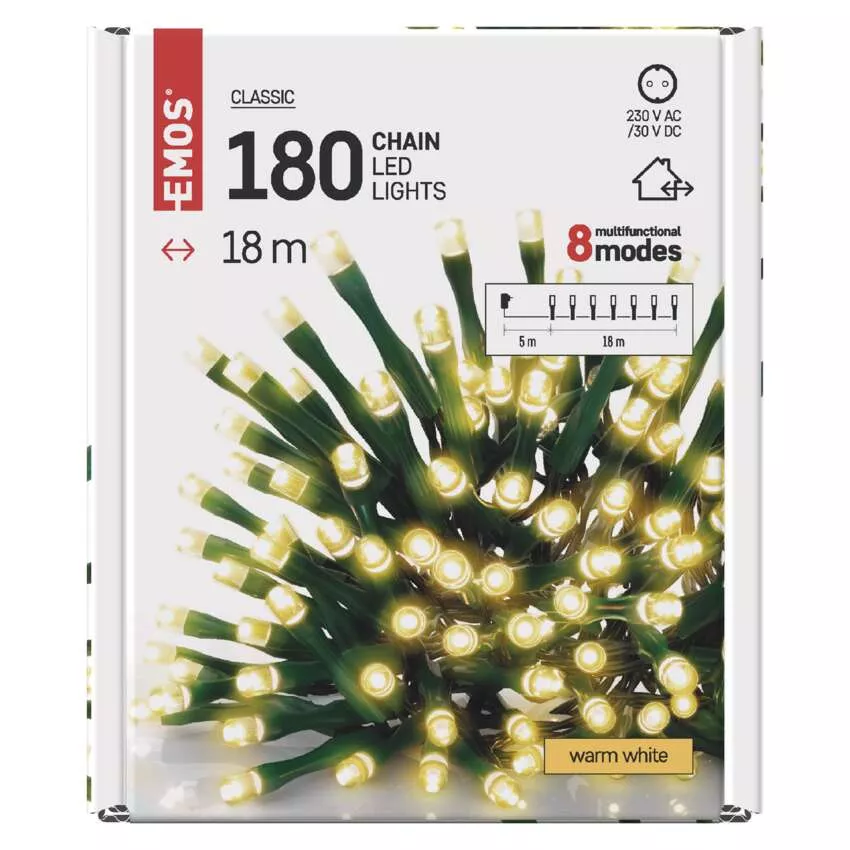 Lampki choinkowe 180 LED 18m, ciepła biel, zielony przewód, 8 programów, IP44