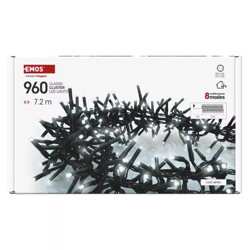 Lampki choinkowe LED Cluster, jeżyk, 960LED 7,2m, zimna biel, 64 programów, IP44