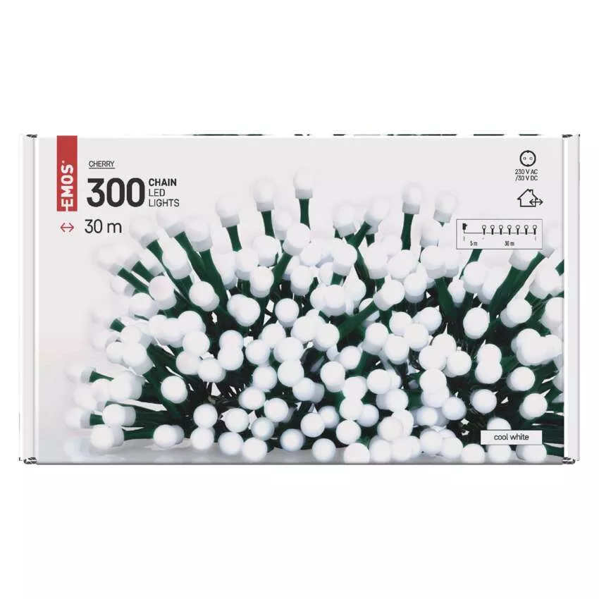 Lampki choinkowe 300 LED cherry 30m , zimna biel, zielony przewód, IP44, timer