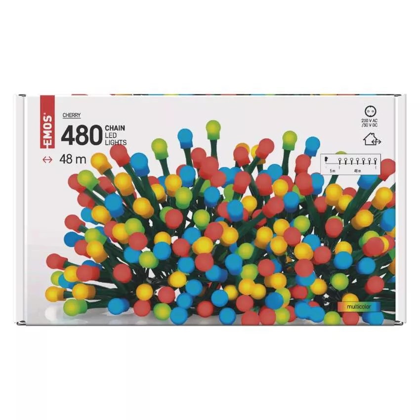 Lampki choinkowe 480 LED cherry 48m, multokolor, zielony przewód, IP44, timer