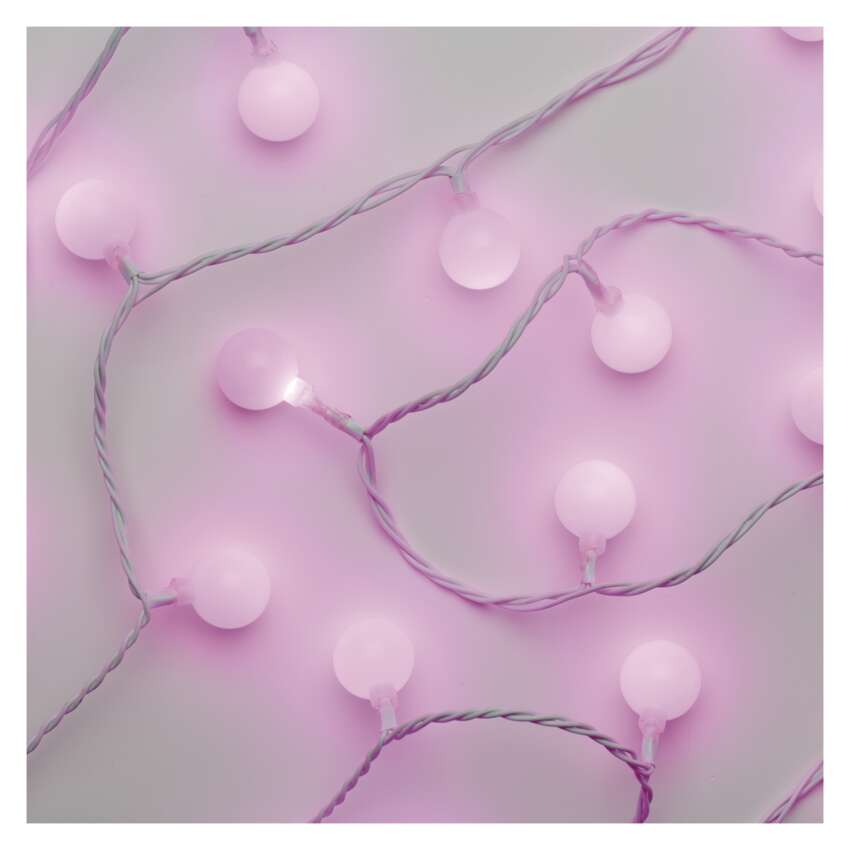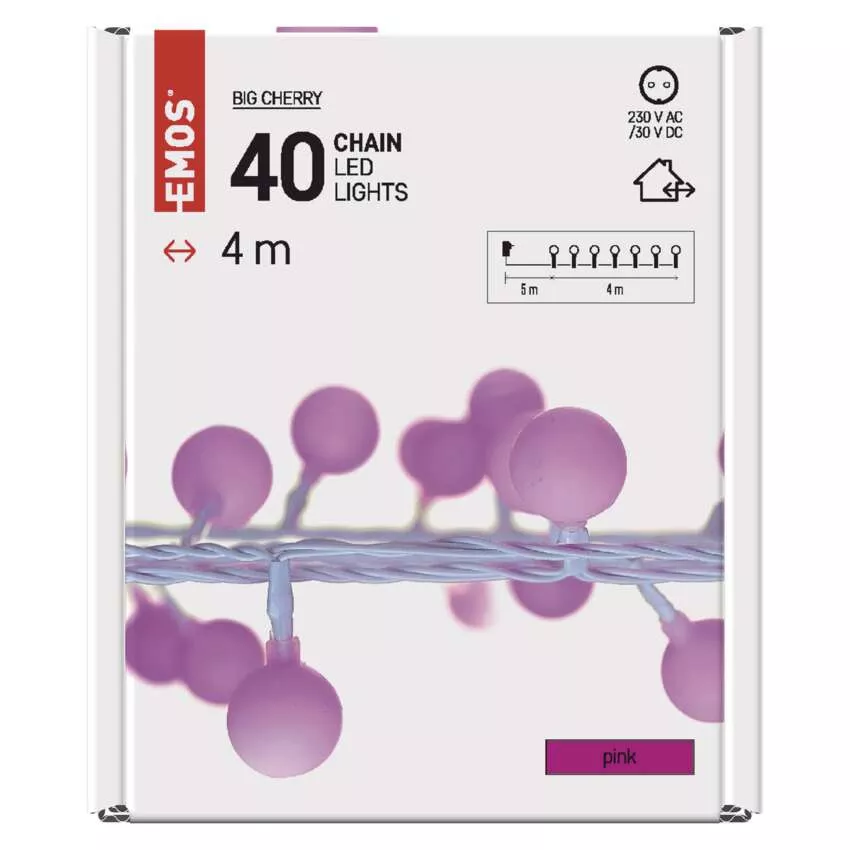 Dekoracje - 40 LED big cherry 4m IP44 róż, biały przewód, IP44, timer