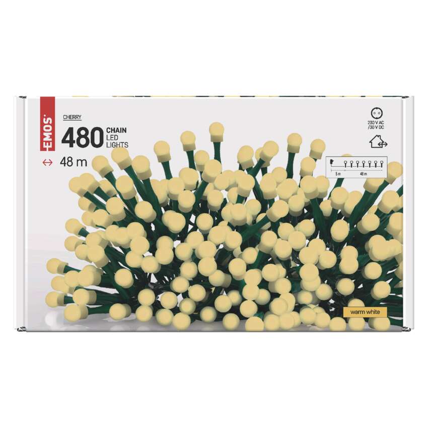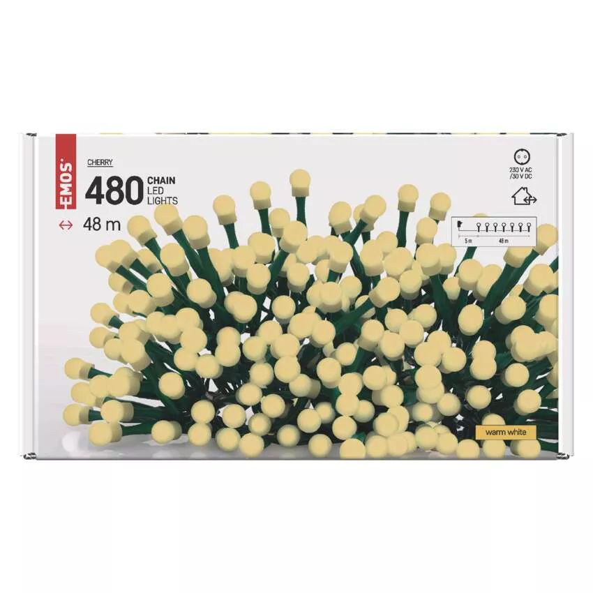 Lampki choinkowe 480 LED cherry 48m , ciepła biel, zielony przewód, IP44, timer
