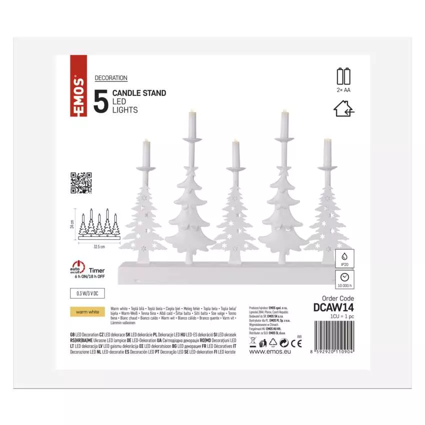Dekoracje - świecznik 5 LED - choinki świątecz, 24 cm 2x AA biały ciepła biel, IP20, timer