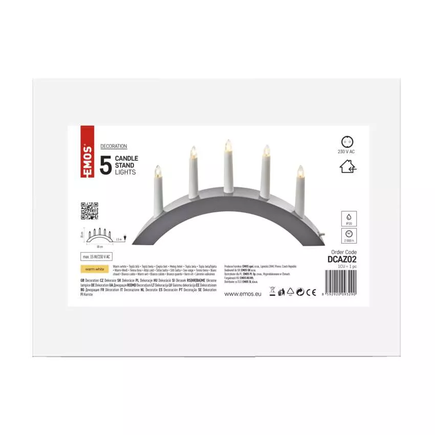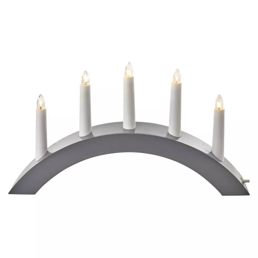 Dekoracje - świecznik drewniany łuk szary 20x38 cm 15W na 5x żarówek E10, IP20