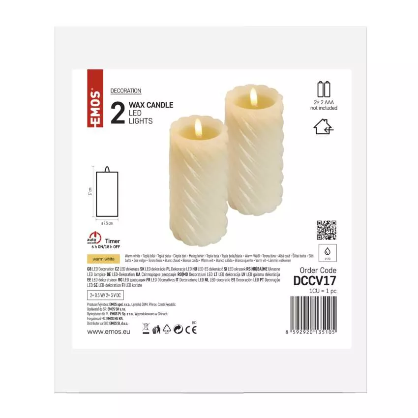 Świece woskowe 17 cm 2x AAA, ciepła biel, IP20, 2 szt, timer