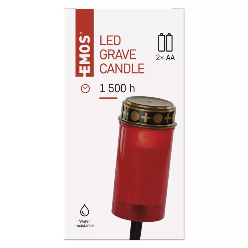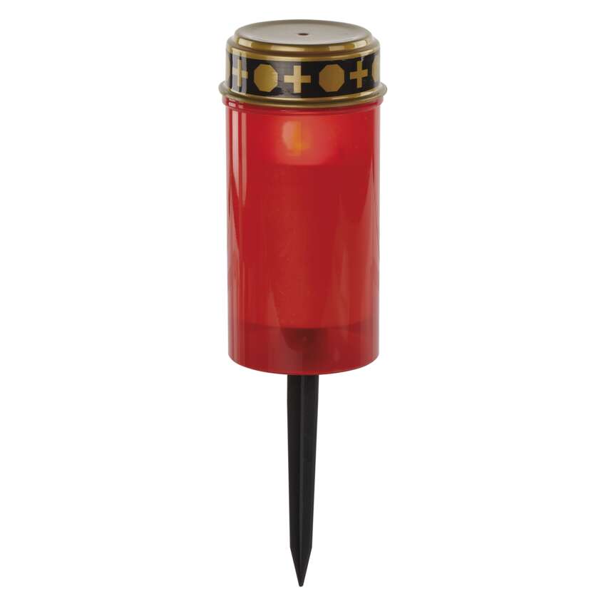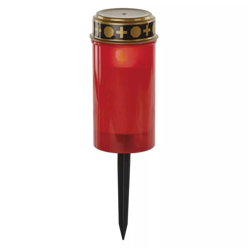 Świeczka cmentarna LED wbijana, czerwona, 2x AA, IP44