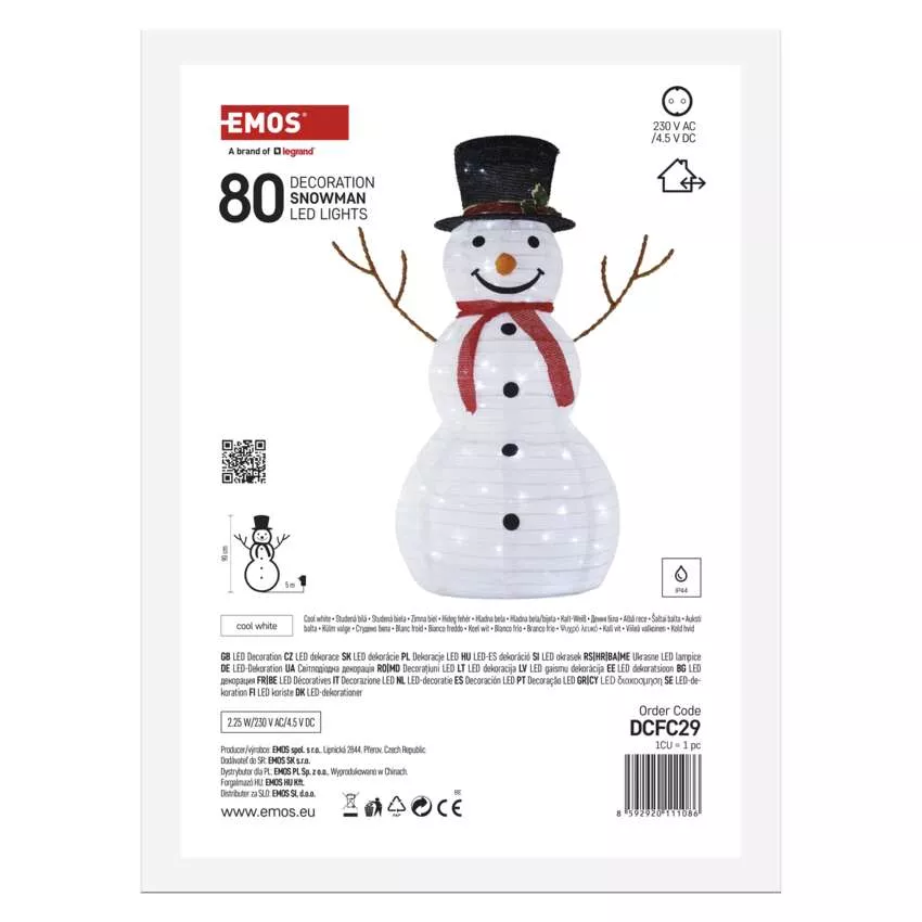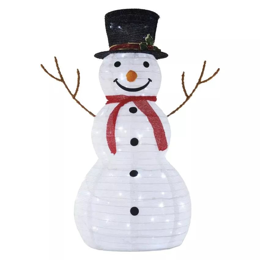 Dekoracje - 30 LED składany bałwanek, 90 cm, zimna biel, IP44