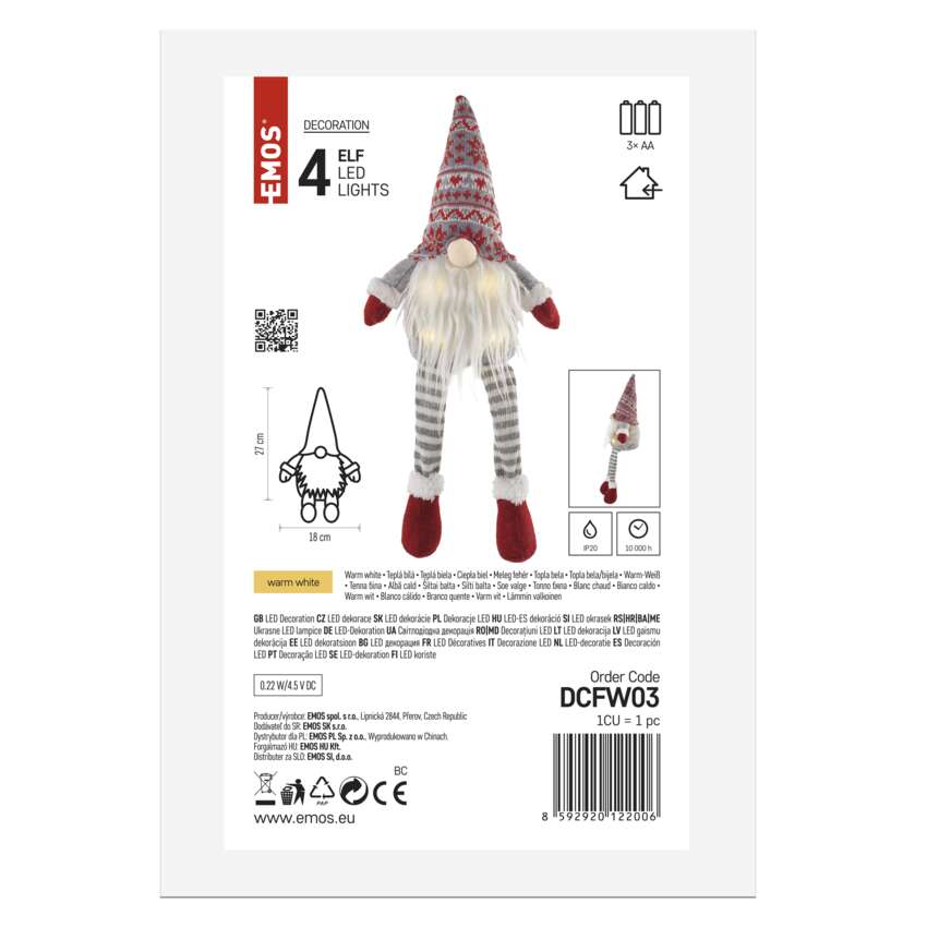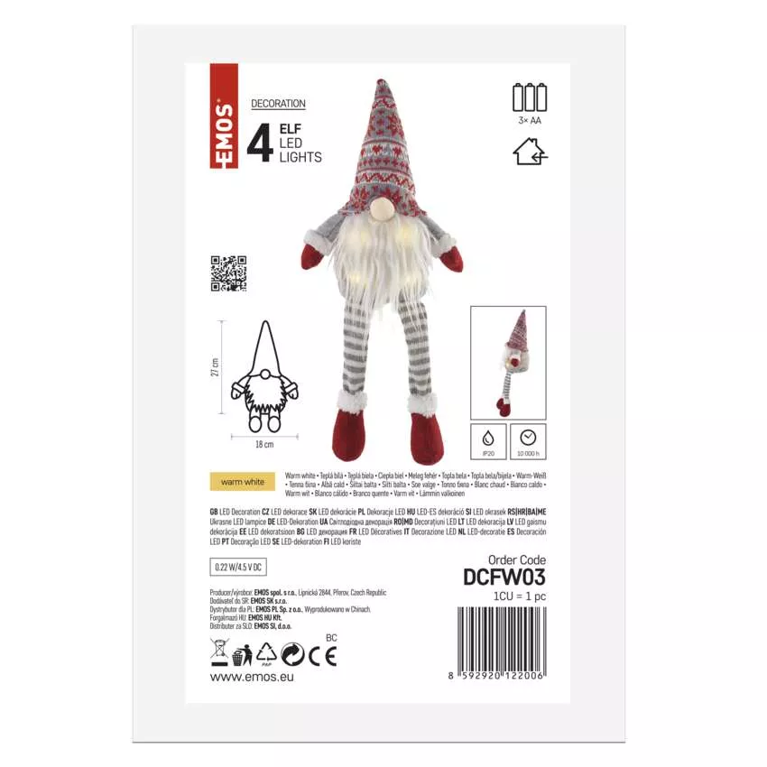 Dekoracje - LED siedzący krasnoludek świąteczny, 18x12x27 cm, 3x AA ciepła biel, IP20