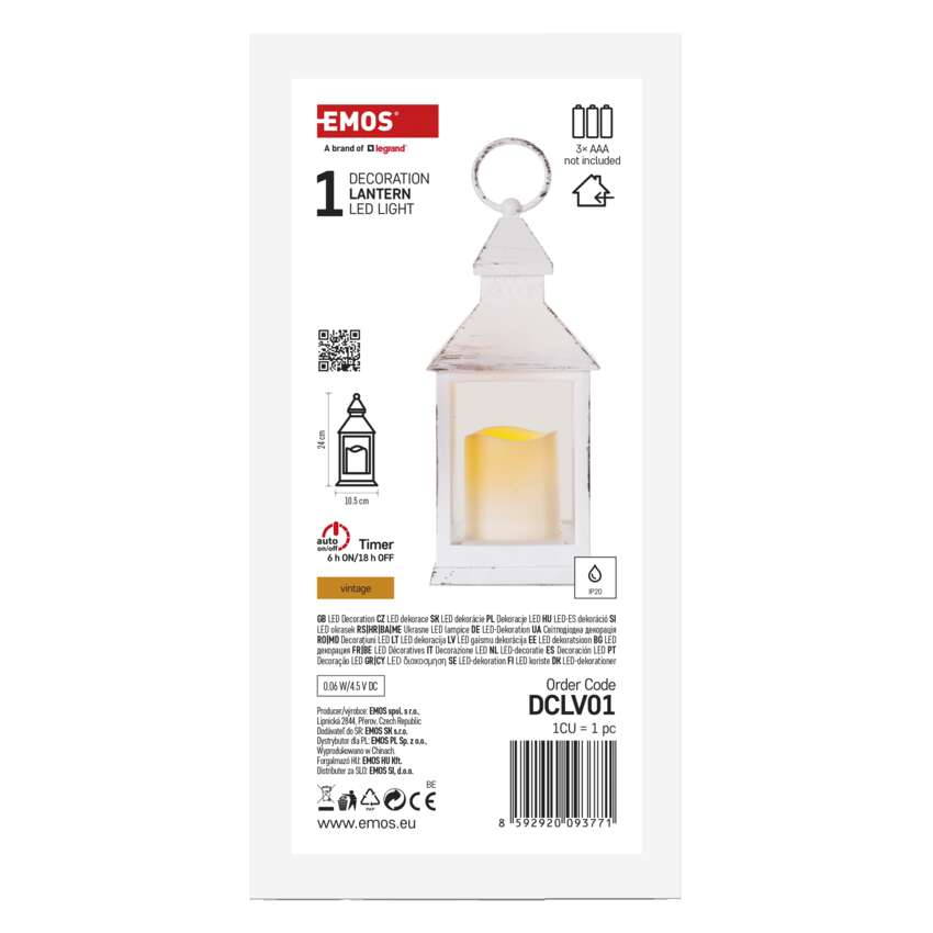 Lampion 1 LED świeczka biały 24 cm 3x AAA, vintage, IP20, timer