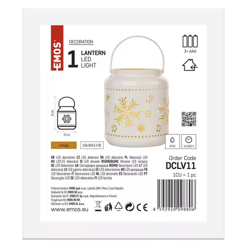 Lampion 1 LED biały metalowy 14 cm 3x AAA, vintage, IP20