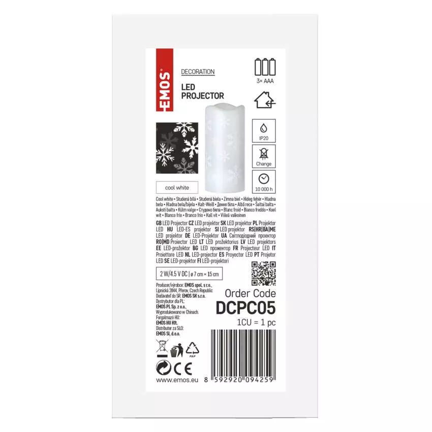 Projektor LED śnieżynki , 3x AAA / USB, zimna biel IP20