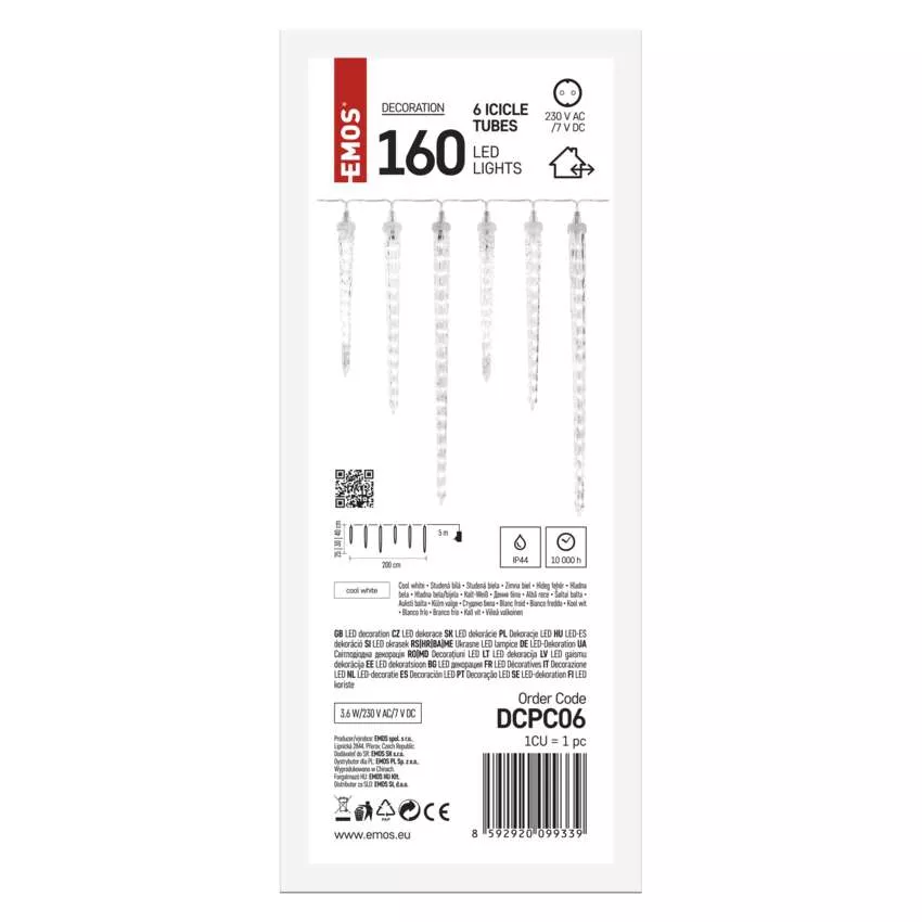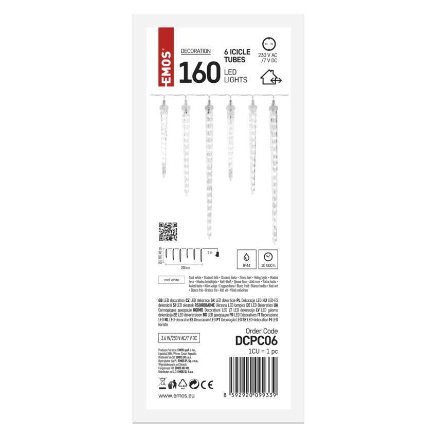 Dekoracje - 160 LED 6x sopel 25 do 40 cm 2 m, zimna biel, IP44