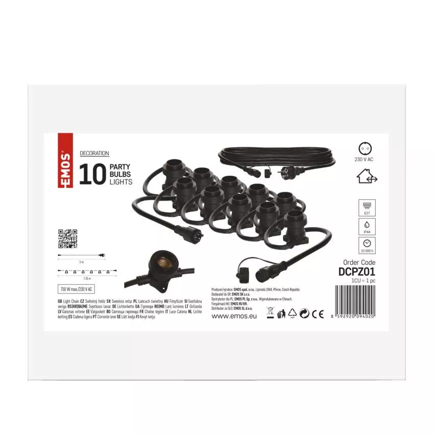 Łańcuch party na żarówkę 10x E27 7,35 m + wtyczka 5m, IP44
