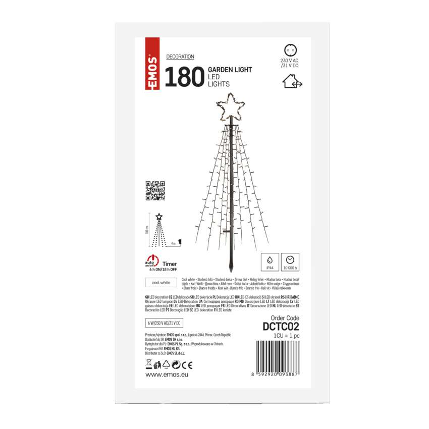 Dekoracja ogrodowa - 180 LED choinka 180 cm, zimna biel, IP44, timer