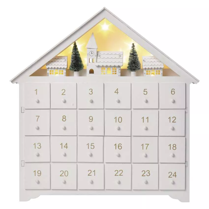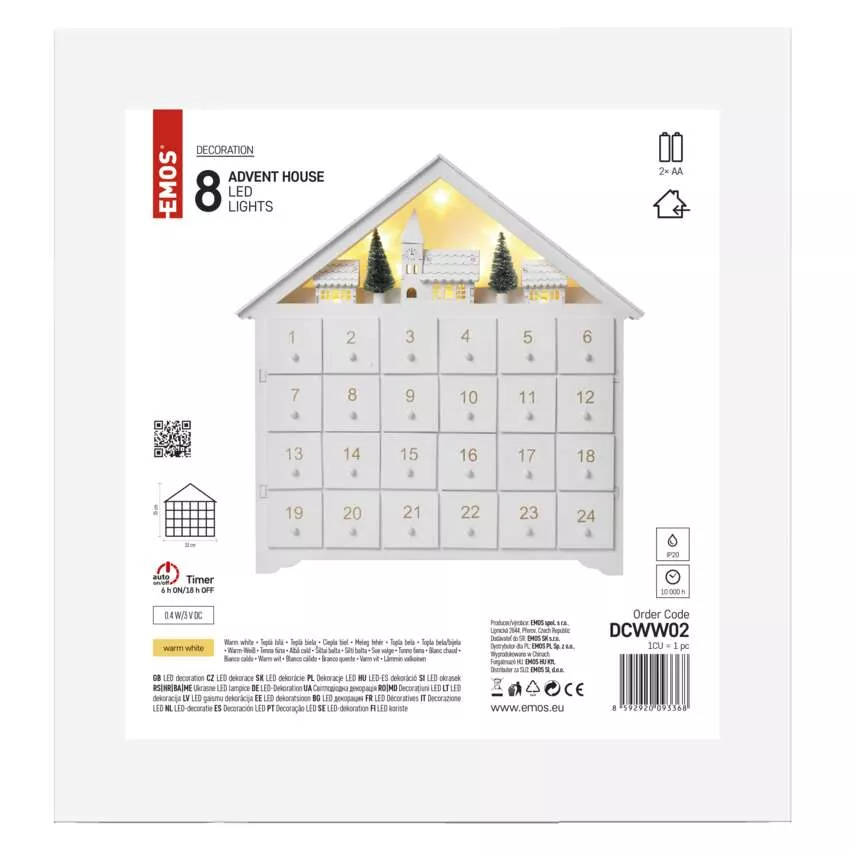 Dekoracje - 8 LED kalendarz adwentowy drewniany 35x30 cm, 2x AA ciepła biel, IP20, timer