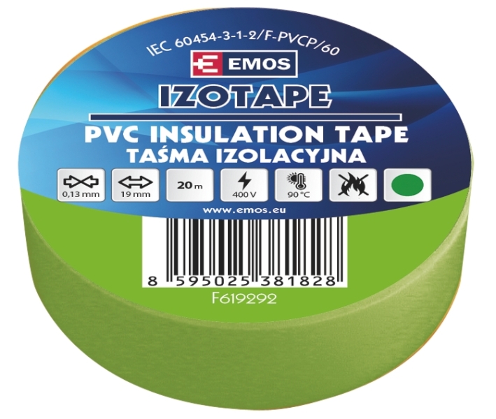 TAŚMA IZOLACYJNA PVC 19mm / 20M / ZIELONA