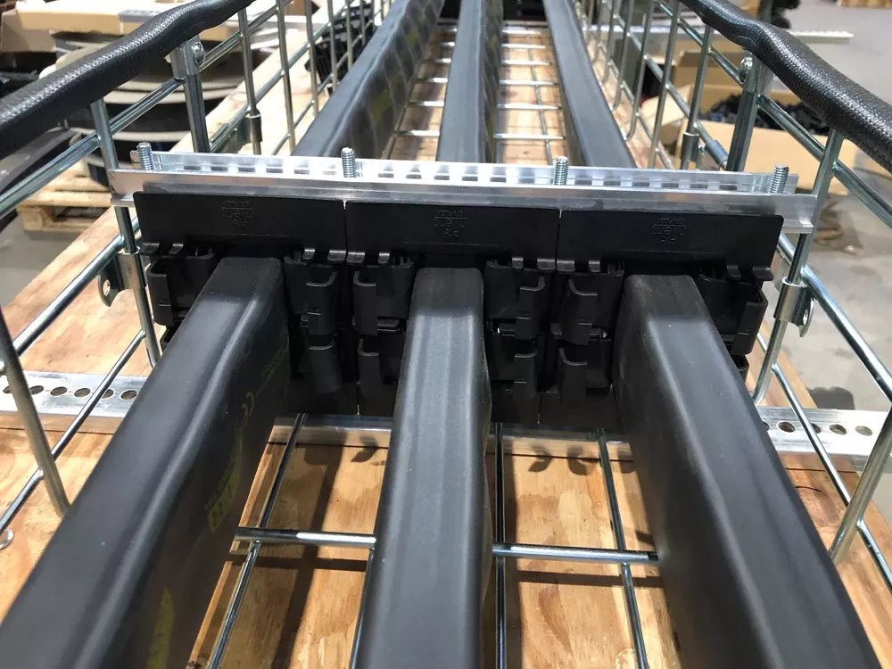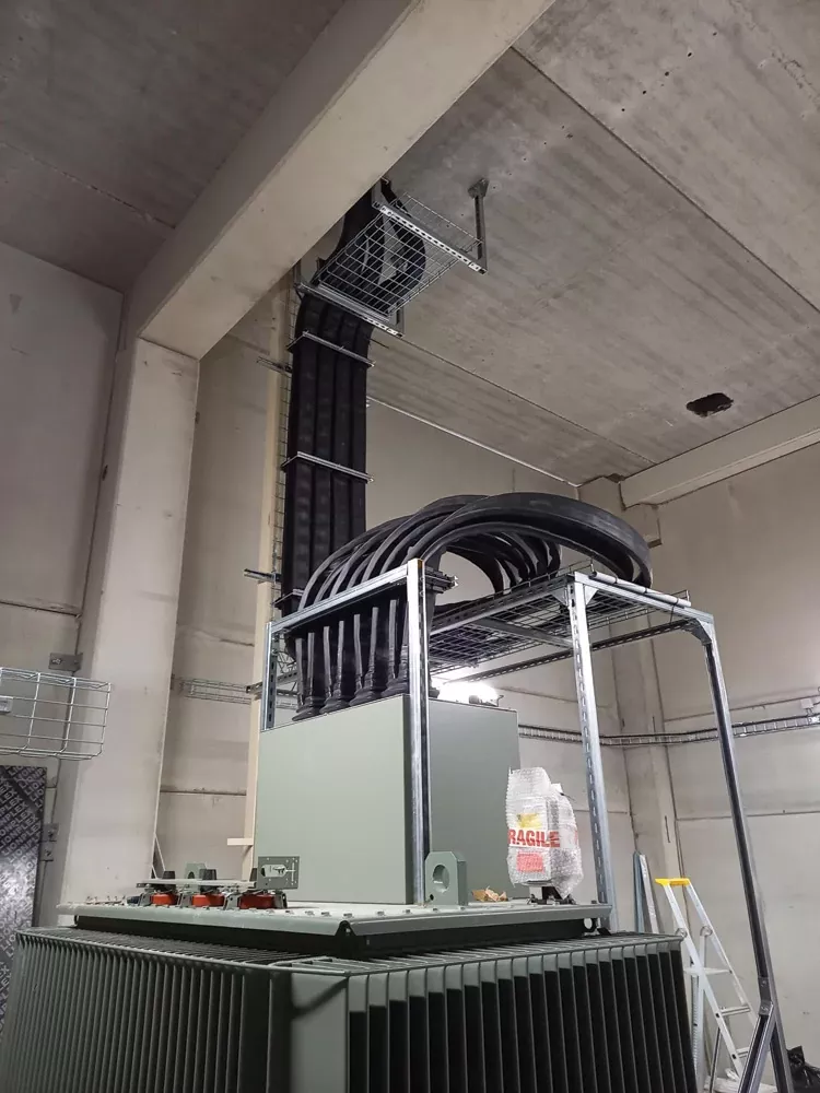 Przewód nVent ERIFLEX FleXbus jest gotowy do użycia, z jednej strony ma końcówkę umożliwiającą bezpośrednie połączenie z szyną zbiorczą lub wyłącznikiem. Jest to innowacyjne i opatentowane rozwiązanie łączące dwa elementy wyposażenia elektrycznego (np. transformator, rozdzielnicę lub generator). FleXbus Advanced utrzymuje wysoki poziom niezawodności i umożliwia łatwe i konfigurowalne połączenie na miejscu montażu bez dodatkowych prac projektowych, wyspecjalizowanej siły roboczej lub drogich narzędzi. Przewód FleXbus jest izolowany materiałem niskodymnym, bezhalogenowym, nierozprzestrzeniającym płomieni (LSHFFR), wysokotemperaturowym i klasy II. Przewód FleXbus to elastyczny, miedziowany płaski oplot aluminiowy w izolacji, o długości od 2 do 10 metrów i o różnych przekrojach poprzecznych do zastosowań od 500 A do 4500 A. Pozwala na podłączenie zasilacza do rozdzielnicy jednym przewodem na fazę do 1600 kVA i dwoma przewodami na fazę do 3150 kVA.