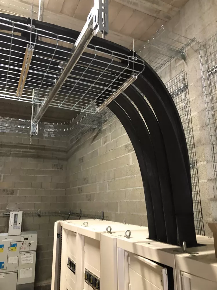 Przewód nVent ERIFLEX FleXbus jest gotowy do użycia, z jednej strony ma końcówkę umożliwiającą bezpośrednie połączenie z szyną zbiorczą lub wyłącznikiem. Jest to innowacyjne i opatentowane rozwiązanie łączące dwa elementy wyposażenia elektrycznego (np. transformator, rozdzielnicę lub generator). FleXbus Advanced utrzymuje wysoki poziom niezawodności i umożliwia łatwe i konfigurowalne połączenie na miejscu montażu bez dodatkowych prac projektowych, wyspecjalizowanej siły roboczej lub drogich narzędzi. Przewód FleXbus jest izolowany materiałem niskodymnym, bezhalogenowym, nierozprzestrzeniającym płomieni (LSHFFR), wysokotemperaturowym i klasy II. Przewód FleXbus to elastyczny, miedziowany płaski oplot aluminiowy w izolacji, o długości od 2 do 10 metrów i o różnych przekrojach poprzecznych do zastosowań od 500 A do 4500 A. Pozwala na podłączenie zasilacza do rozdzielnicy jednym przewodem na fazę do 1600 kVA i dwoma przewodami na fazę do 3150 kVA.