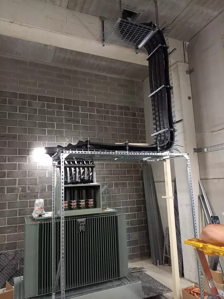 Przewód nVent ERIFLEX FleXbus jest gotowy do użycia, z jednej strony ma końcówkę umożliwiającą bezpośrednie połączenie z szyną zbiorczą lub wyłącznikiem. Jest to innowacyjne i opatentowane rozwiązanie łączące dwa elementy wyposażenia elektrycznego (np. transformator, rozdzielnicę lub generator). FleXbus Advanced utrzymuje wysoki poziom niezawodności i umożliwia łatwe i konfigurowalne połączenie na miejscu montażu bez dodatkowych prac projektowych, wyspecjalizowanej siły roboczej lub drogich narzędzi. Przewód FleXbus jest izolowany materiałem niskodymnym, bezhalogenowym, nierozprzestrzeniającym płomieni (LSHFFR), wysokotemperaturowym i klasy II. Przewód FleXbus to elastyczny, miedziowany płaski oplot aluminiowy w izolacji, o długości od 2 do 10 metrów i o różnych przekrojach poprzecznych do zastosowań od 500 A do 4500 A. Pozwala na podłączenie zasilacza do rozdzielnicy jednym przewodem na fazę do 1600 kVA i dwoma przewodami na fazę do 3150 kVA.