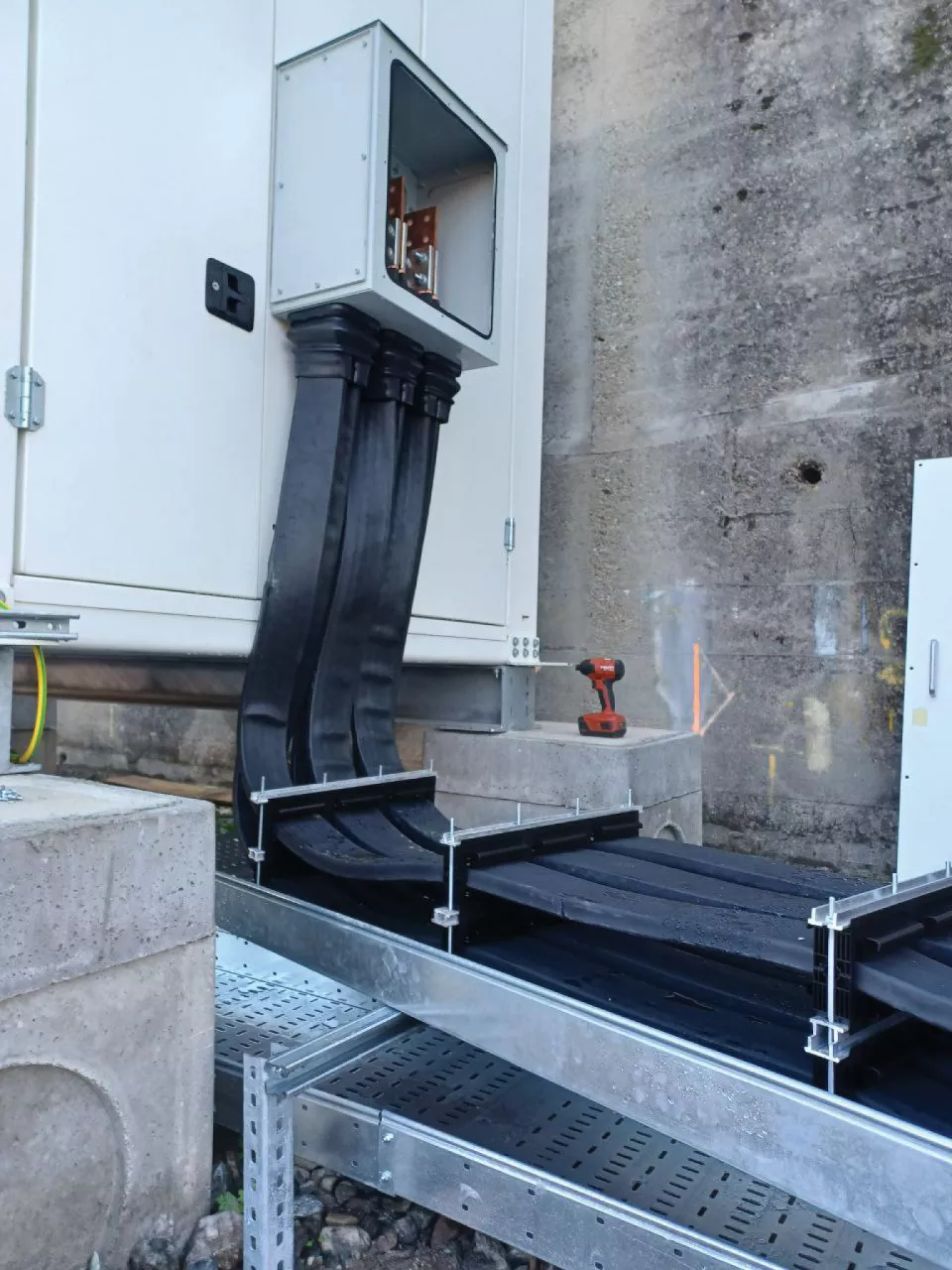 Przewód nVent ERIFLEX FleXbus jest gotowy do użycia, z jednej strony ma końcówkę umożliwiającą bezpośrednie połączenie z szyną zbiorczą lub wyłącznikiem. Jest to innowacyjne i opatentowane rozwiązanie łączące dwa elementy wyposażenia elektrycznego (np. transformator, rozdzielnicę lub generator). FleXbus Advanced utrzymuje wysoki poziom niezawodności i umożliwia łatwe i konfigurowalne połączenie na miejscu montażu bez dodatkowych prac projektowych, wyspecjalizowanej siły roboczej lub drogich narzędzi. Przewód FleXbus jest izolowany materiałem niskodymnym, bezhalogenowym, nierozprzestrzeniającym płomieni (LSHFFR), wysokotemperaturowym i klasy II. Przewód FleXbus to elastyczny, miedziowany płaski oplot aluminiowy w izolacji, o długości od 2 do 10 metrów i o różnych przekrojach poprzecznych do zastosowań od 500 A do 4500 A. Pozwala na podłączenie zasilacza do rozdzielnicy jednym przewodem na fazę do 1600 kVA i dwoma przewodami na fazę do 3150 kVA.