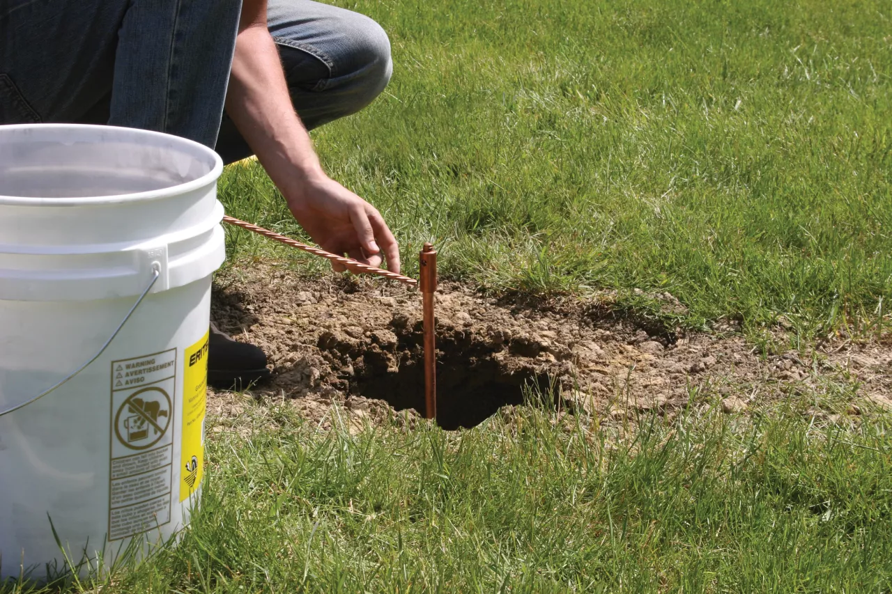 Elektrolityczna powłoka miedziana o czystości 99,9%. Pręty mają rdzeń i końcówkę ze stali wysokowęglowej, która zapewnia większy poziom wytrzymałości podczas wbijania. Powłoka miedziana nie pęka w przypadku zagięcia lub rozdarcia podczas wbijania. Minimalna powłoka miedziana 10 milicali na prętach zgodna z UL® 467. Nazwa nVent ERICO, długość, średnica oraz numer części są wytłoczone w odległości 12" (304,8 mm) od fazowanego końca. Logo UL oraz numer kontrolny (jeżeli dotyczy) są wytłoczone na każdym z prętów w celu ułatwienia inspekcji i instalacji.