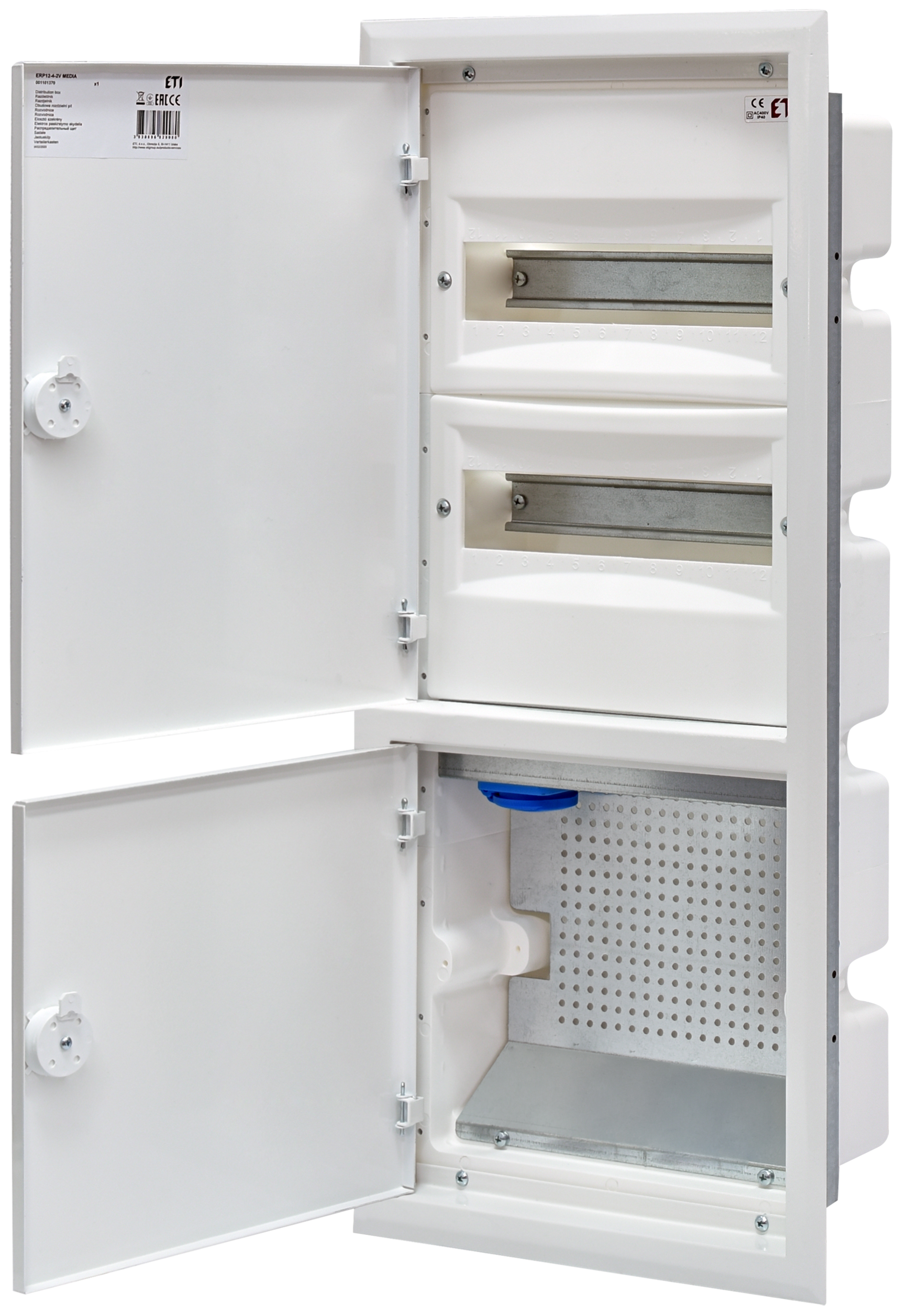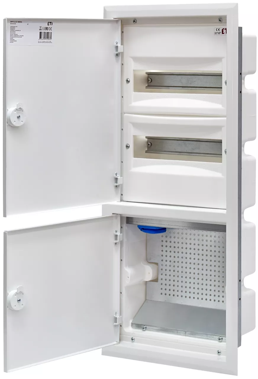 2 rzędy modułówki + część multimedialna. Wyposażenie części medialnej -gniazdko 230V, perforowana płyta montażowa z otworami - 8xRJ(001101367) + 1x SC(001101391) + 3xF (001101365)