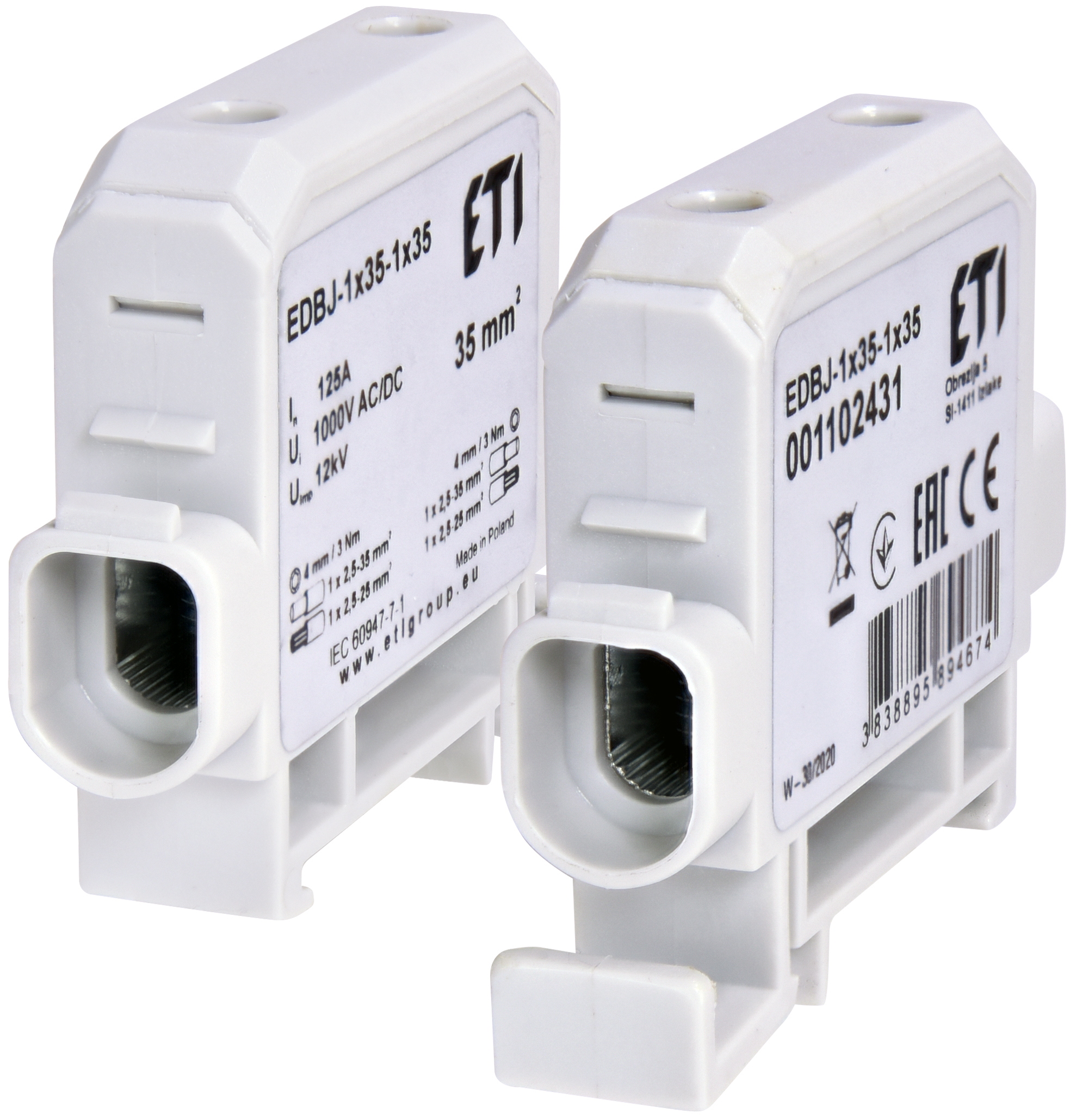 EDBJ-1x35-1x35 Zacisk 125A 1-torowy (1,5-35mm2 - 1,5-35mm2) do przewodów AL/Cu szary