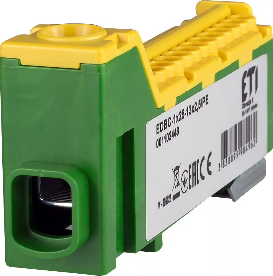 EDBC-1x25-13x2,5/PE Blok rozdzielczy 63A (1x25mm2-13x2,5mm2) żółto-zielony