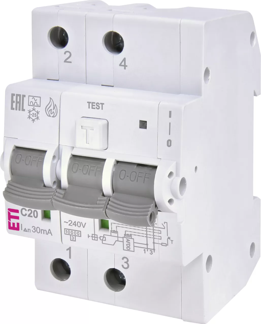 KZS-AFDD 3M2p A C20/0.03 Wyłącznik różnicowoprądowy z zabezpieczeniem nadprądowym i z detekcją zwarć łukowych.