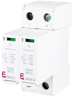 ETITEC SM T12 300/12,5 2+0 Ogranicznik przepięć T1, T2 (B, C) - bez prądu upływu