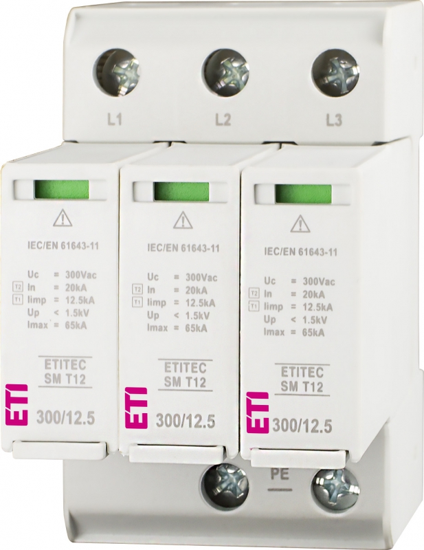ETITEC SM T12 300/12,5 3+0 Ogranicznik przepięć T1, T2 (B, C) - bez prądu upływu