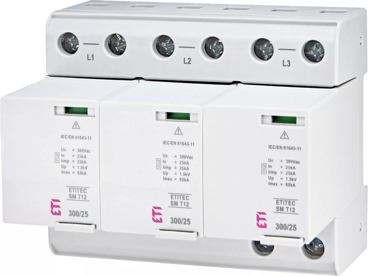 ETITEC SM T12 300/25 3+0 Ogranicznik przepięć T1, T2 (B, C) - bez prądu upływu