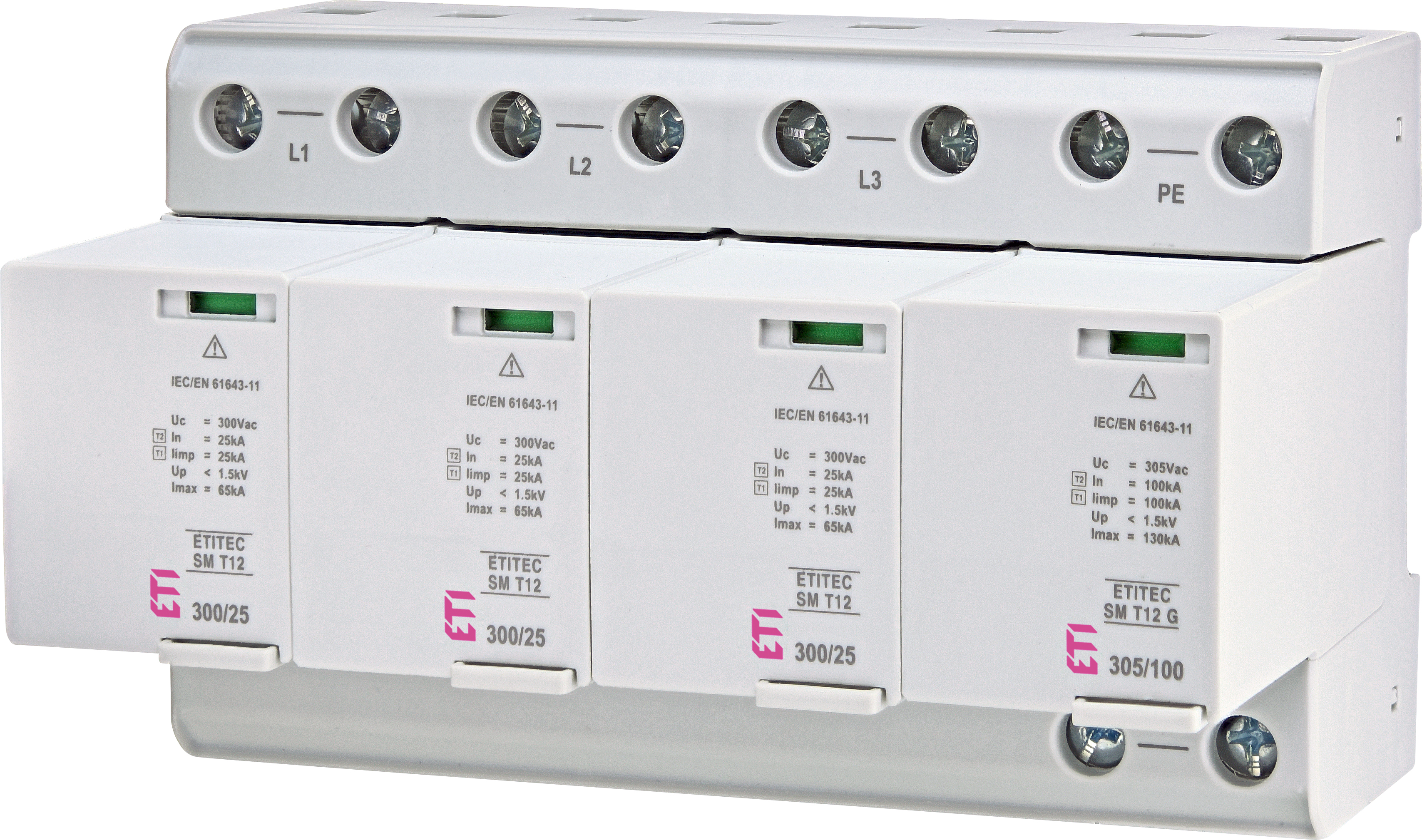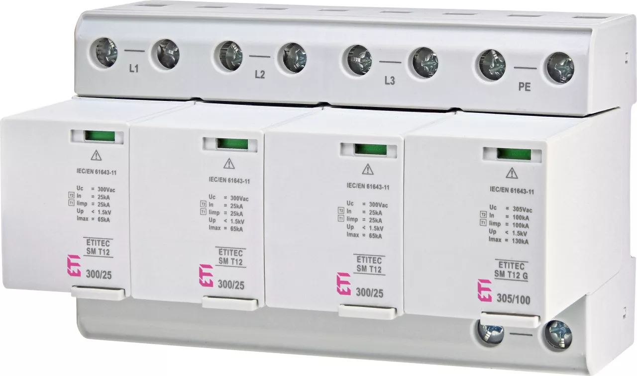 ETITEC SM T12 300/25 3+1 Ogranicznik przepięć T1, T2 (B, C) - bez prądu upływu