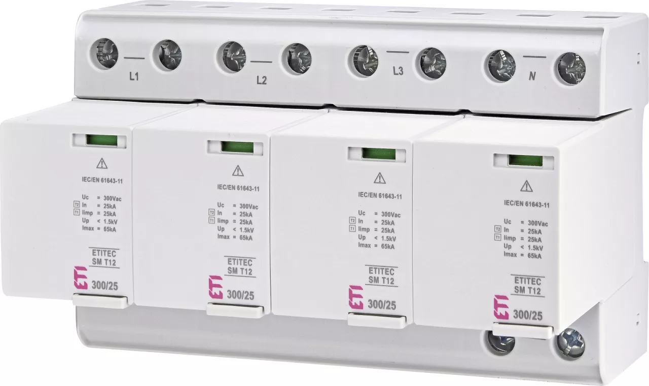 ETITEC SM T12 300/25 4+0 Ogranicznik przepięć T1, T2 (B, C) - bez prądu upływu