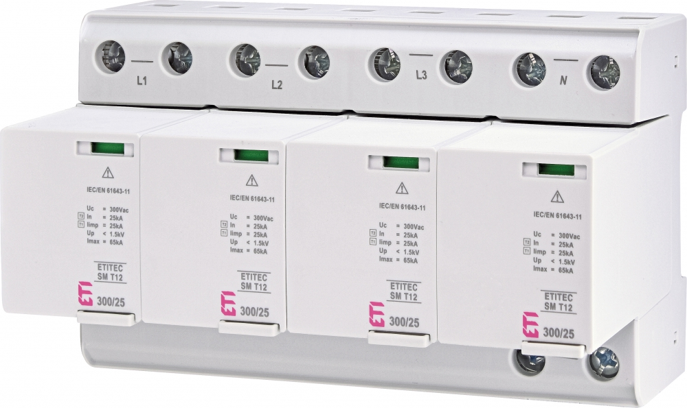 ETITEC SM T12 300/25 4+0 RC Ogranicznik przepięć T1, T2 (B, C) - bez prądu upływu