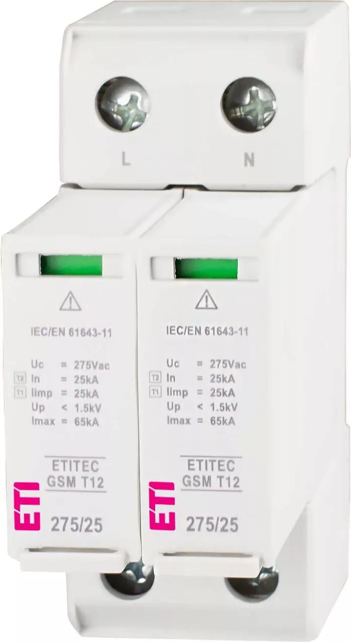 ETITEC GSM T12 275/25 1+1 Ogranicznik przepięć T1, T2 (B, C) - iskiernik