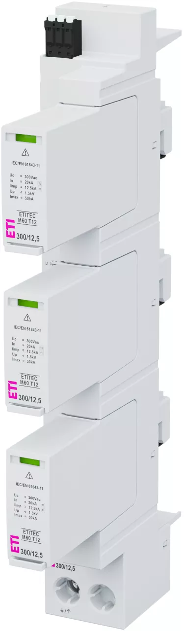 ETITEC M60 T12 300/12,5 3+0 RC Ogranicznik przepięć T1, T2 (B, C) na szyny prądowe 60 mm