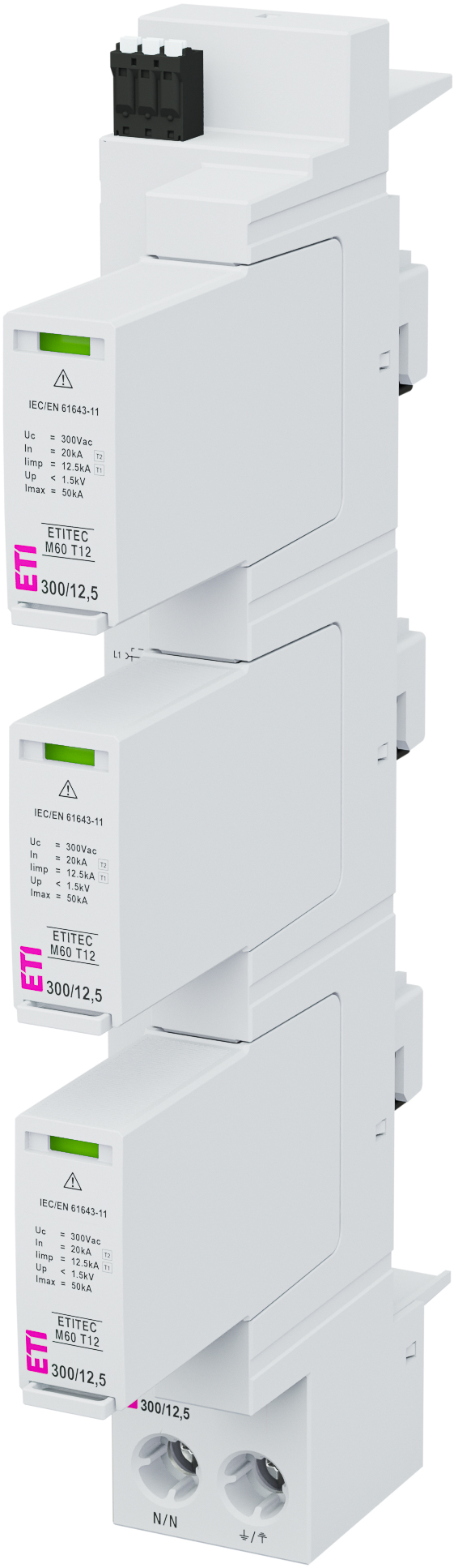 ETITEC M60 T12 300/12,5 3+1 RC Ogranicznik przepięć T1, T2 (B, C) na szyny prądowe 60 mm