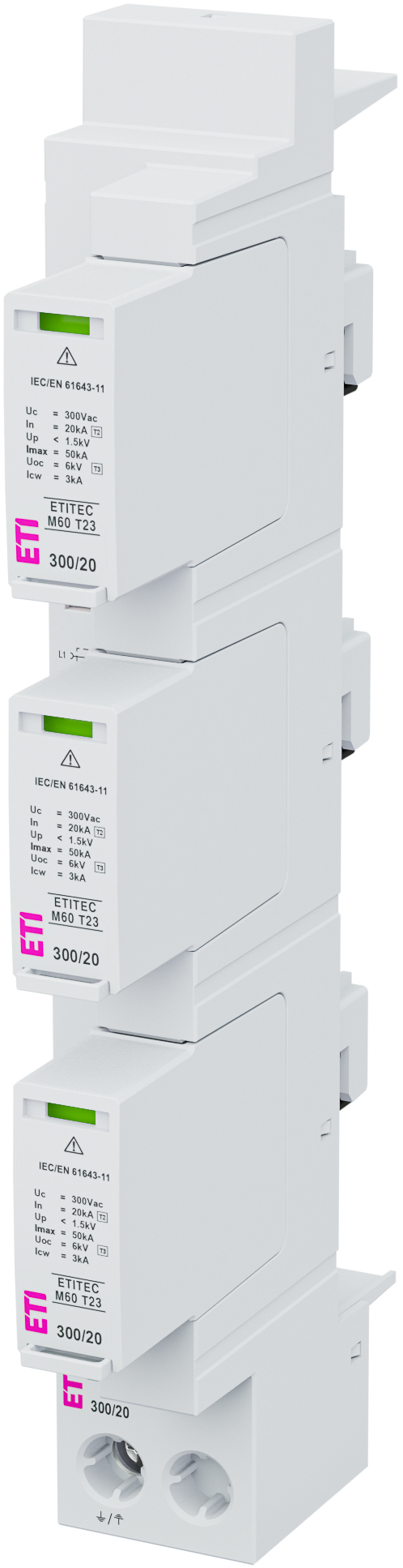 ETITEC M60 T23 300/20 3+0 Ogranicznik przepięć T2, T3 (C, D) na szyny prądowe 60 mm
