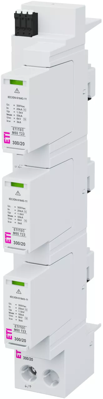 ETITEC M60 T23 300/20 3+0 RC Ogranicznik przepięć T2, T3 (C, D) na szyny prądowe 60 mm
