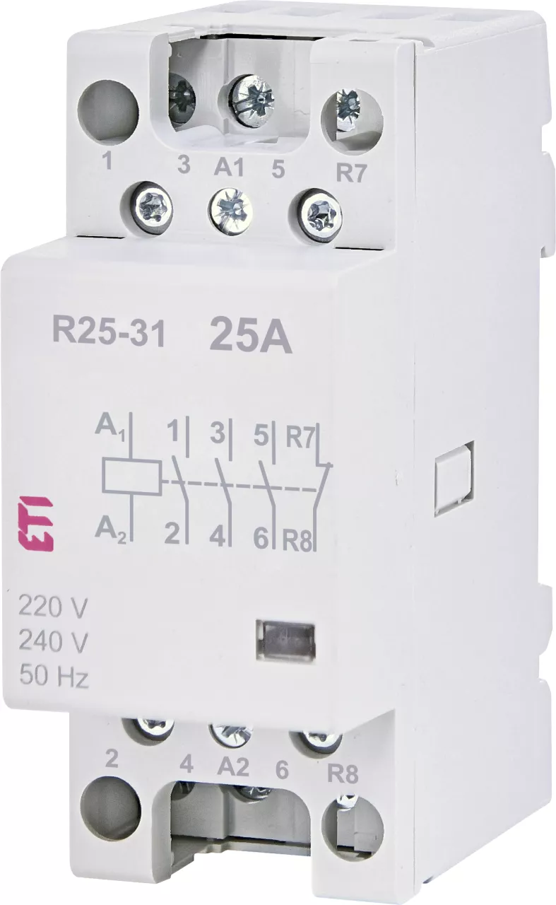 R 25-31 230V Stycznik modułowy 25A 3 styki zwierne i 1 rozwierny (2 mod. 4 bieg.)