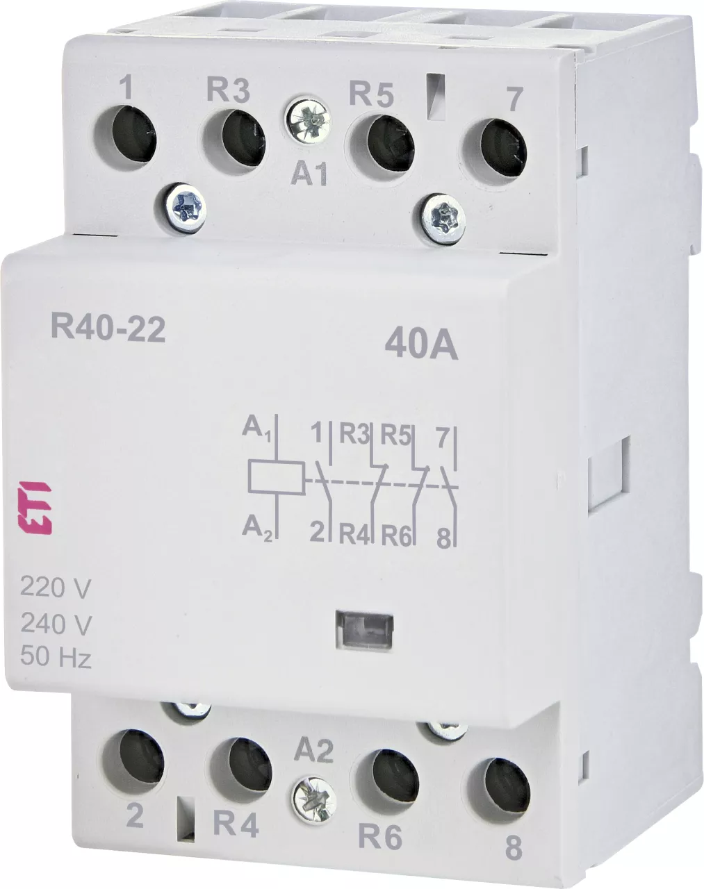 R 40-22 230V Stycznik modułowy 40A 2 styki zwierne i 2 rozwierne (3 mod. 4 bieg.)