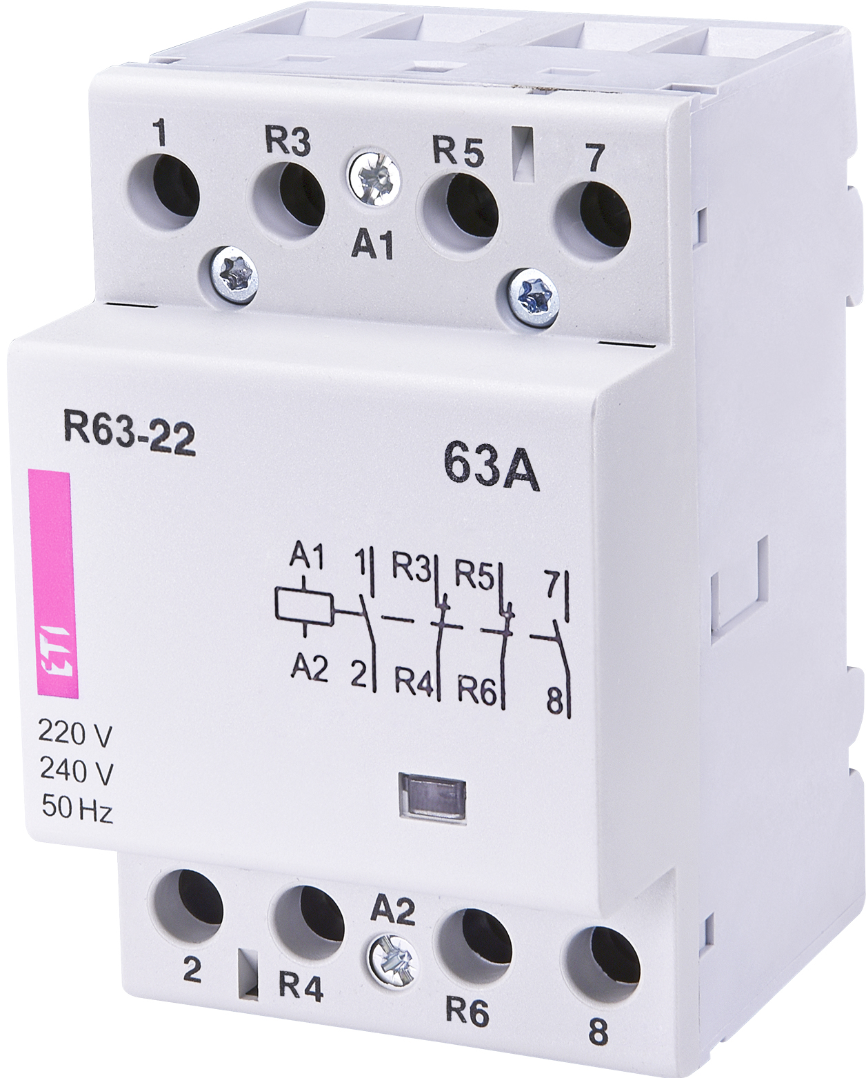 R 63-22 230V Stycznik modułowy 63A 2 styki zwierne i 2 rozwierne (3 mod. 4 bieg.)