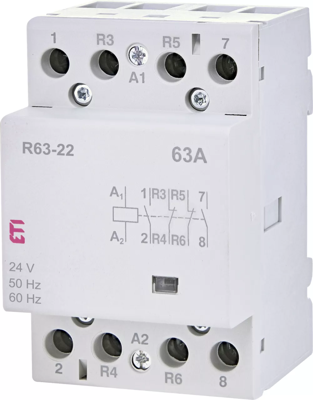 R 63-22 24V Stycznik modułowy 63A 2 styki zwierne i 2 rozwierne (3 mod. 4 bieg.)