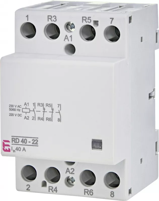 RD 40-22-230V AC/DC Stycznik modułowy 40A 2 styki zwierne i 2 rozwierne (3 mod. 4 bieg.)